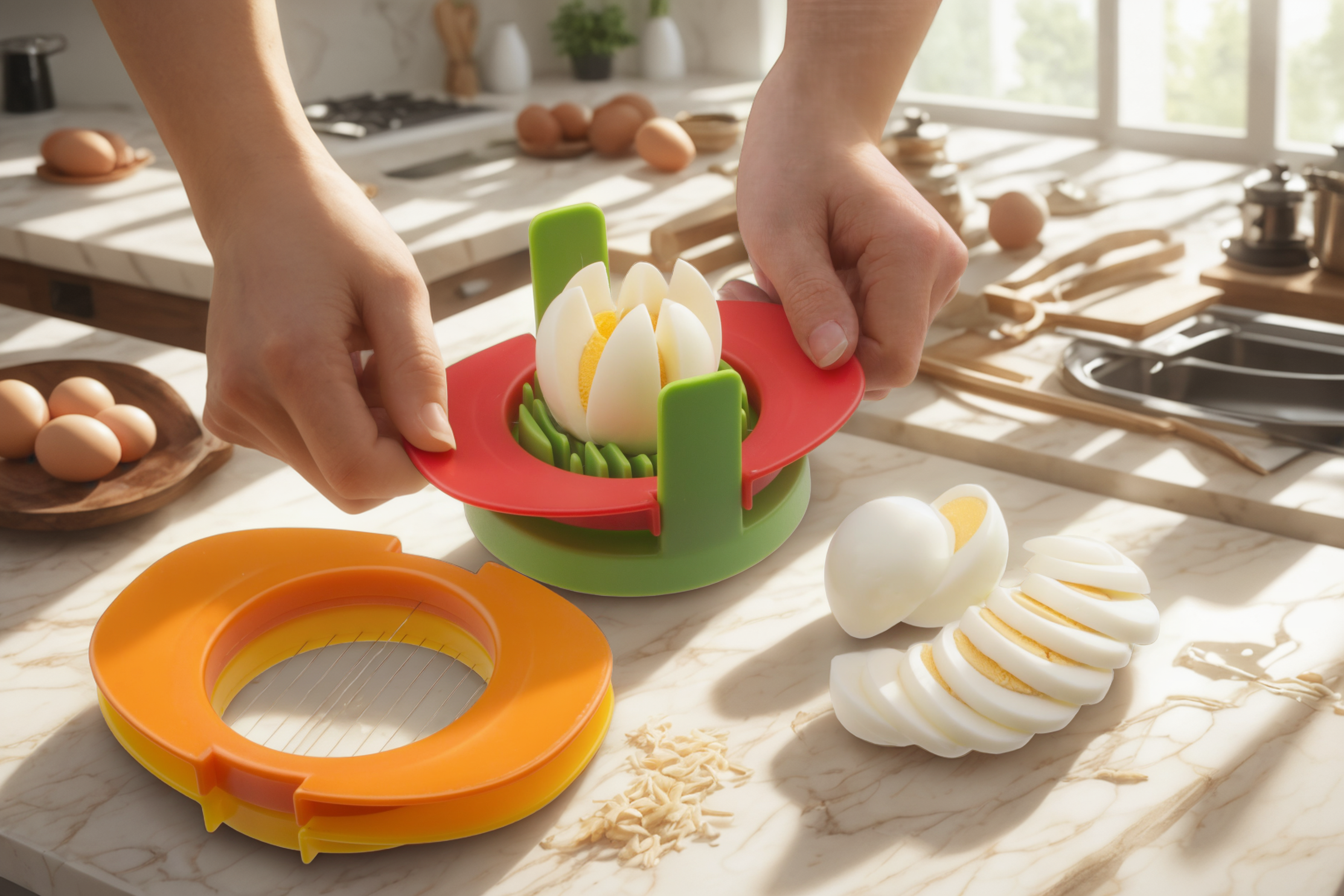 The beauty of a well-designed egg slicer tool lies in its simplicity and user-friendliness. The Multi-Style Egg Slicer is crafted with ergonomics in mind, requiring minimal effort. Simply place your boiled egg in the base, align the slicer, and press down for professional-grade results in seconds. Its lightweight yet durable food-safe construction ensures easy handling and longevity. This egg slicer tool is compact, fitting easily into drawers or on countertops, proving that powerful functionality doesn't require bulky equipment, and making cutting eggs a breeze.