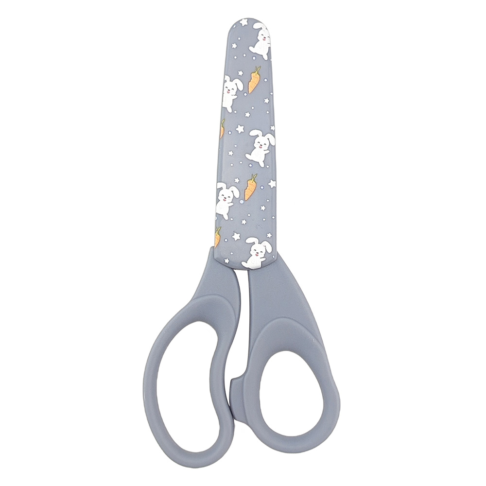 Adding a layer of protection and whimsy, the scissors with cover feature elevates the overall experience. These OEM school scissors come adorned with a delightful illustrated blade cover, featuring playful motifs like white bunny rabbits and orange carrots against a soft blue backdrop. This charming design not only shields the blades when not in use but also sparks joy and imagination in young users. It's a clever touch that turns a mundane tool into a storybook accessory, perfect for school backpacks or home craft kits. In my testing, the cover stayed securely in place, easy for kids to apply and remove, which is crucial for maintaining safety during transport and storage. Overall, this feature makes the scissors more engaging and practical for everyday school life.