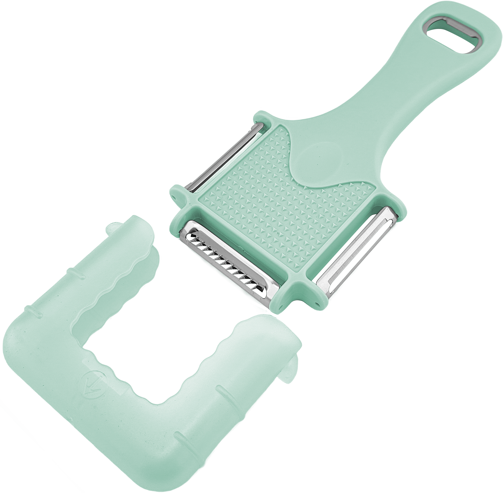Featuring a dual-blade system, this portable peeler excels in versatility. The straight blade smoothly removes skins from potatoes, carrots, and apples with minimal effort, while the julienne blade creates perfect thin strips for salads, stir-fries, or decorative garnishes. Its ergonomic handle with a textured grip ensures comfortable use, even during extended sessions, and the soothing pastel hue adds a stylish touch to your kitchen essentials. Plus, the built-in hook allows for easy hanging storage, and the safety cover keeps blades protected and sharp.