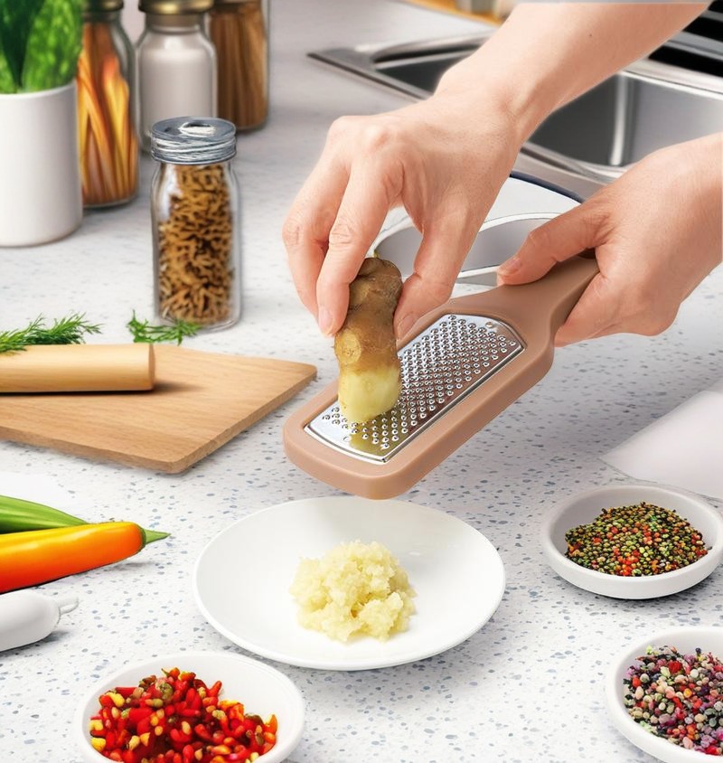 Se você é um entusiasta do sabor, então a elegante gordura ergonômica de lã de gengibre revolucionará sua experiência na cozinha. Com a sofisticada moagem de microporos sofisticada, ele transforma sem esforço o gengibre fresco em uma pasta fina de textura para melhorar o prato. Devido à sua aderência ergonômica e alça não deslizante, a grade é completamente livre de tensão. A lâmina é feita de aço inoxidável de alta qualidade, que pode resistir à ferrugem e corrosão, mesmo depois de reutilizá-la. Compacto e elegante, seus tons de terrosos macios adicionam elegância à sua cozinha, garantindo um armazenamento fácil. Além disso, seja enxaguado em água corrente ou usando uma máquina de lavar louça, é fácil limpar e economiza muito tempo.