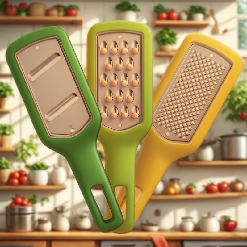 Nosso novo conjunto de três peças é o exemplo perfeito de utensílios de cozinha superiores de Yangjiang. A coleção começa com um elegante cortador verde, com grandes lâminas duplas, projetadas para fornecer fatias perfeitamente uniformes de frutas e legumes sem esforço. Depois disso, o vibrante ralador clássico amarelo, um verdadeiro ralador de alimentos multifuncionais com uma superfície de grão fino. É projetado para transformar queijos duros, nozes e mais em pedaços delicados, tornando -o uma parte indispensável do seu kit de ferramentas culinária. Essas ferramentas são excelentes exemplos da qualidade que você pode esperar dos utensílios de cozinha OEM de primeira linha.
