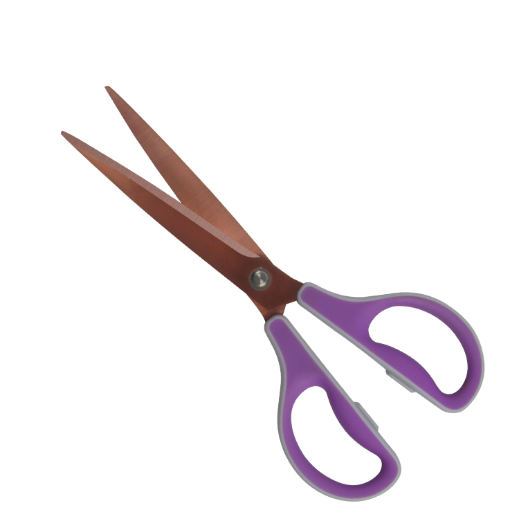 Imagine um par de ferramentas de corte de artigos de papelaria que combinam perfeitamente elegância estética com desempenho superior. Nosso design mais recente apresenta lâminas criadas com maestria, com um acabamento luxuoso de tumulto de cobre, oferecendo um corte nítido e preciso que desliza através de papel e outros materiais. Complementando as lâminas duráveis estão as garras roxas ergonômicas, meticulosamente projetadas para se ajustar à curva natural da sua mão. Esse acabamento macio e emborrachado oferece conforto e controle excepcionais, tornando essas tesouras um prazer de usar para qualquer projeto.