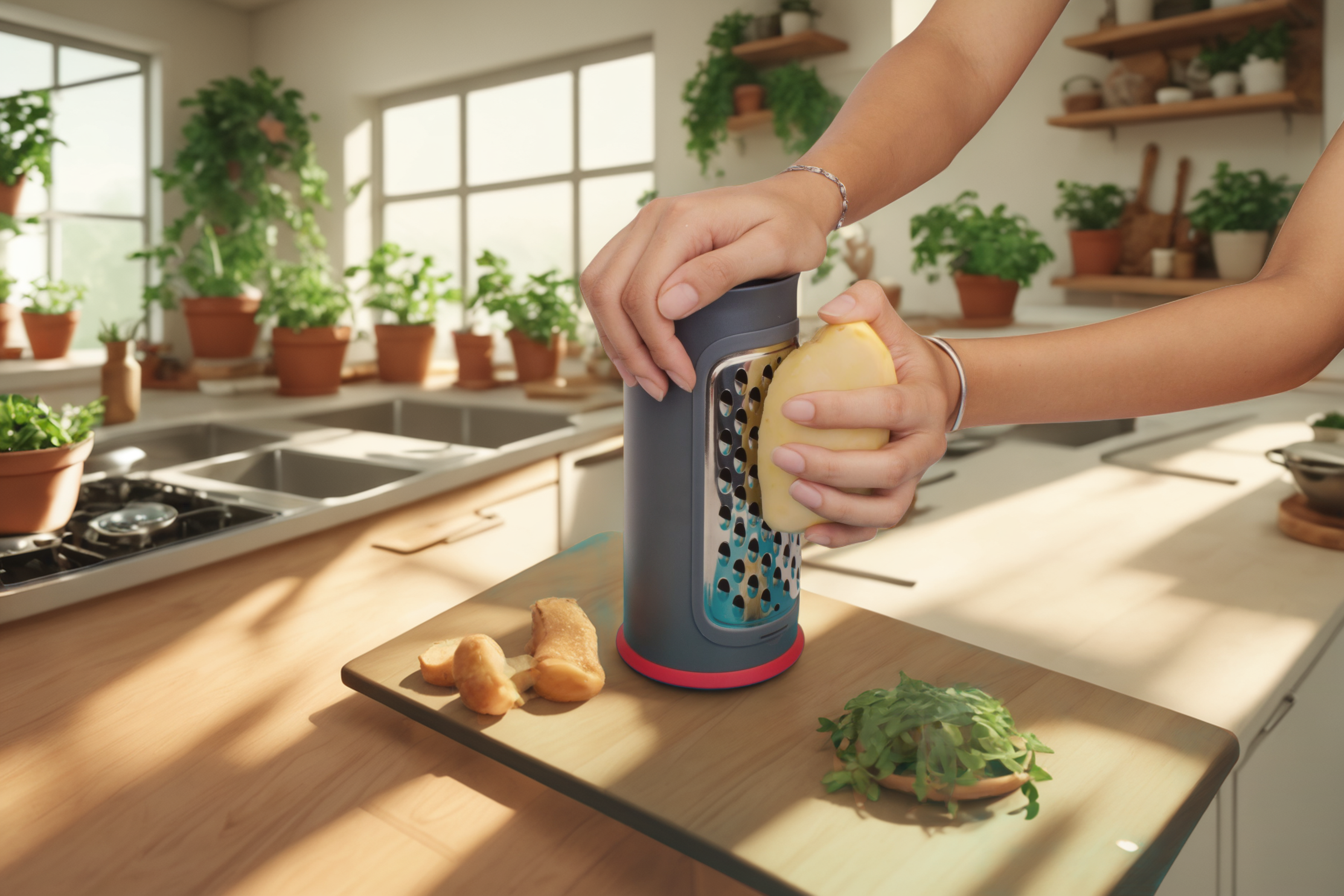 Este ralador é uma prova da versatilidade de nossa série multifuncional de cozinha. Ele se adapta lindamente às suas diversas necessidades culinárias, se você está destruindo as batatas para hash marrons crocantes ou gengibre fino para um arremesso aromático. Ele também combina maravilhosamente com outros itens essenciais da cozinha, como um tapete de corte vibrante, promovendo um espaço de preparação organizado e higiênico. Mais do que apenas um gadget, este ralador de cilindros é uma solução elegante que eleva o cozimento diário, transformando a preparação de alimentos em uma parte genuinamente agradável e sem esforço do seu dia.