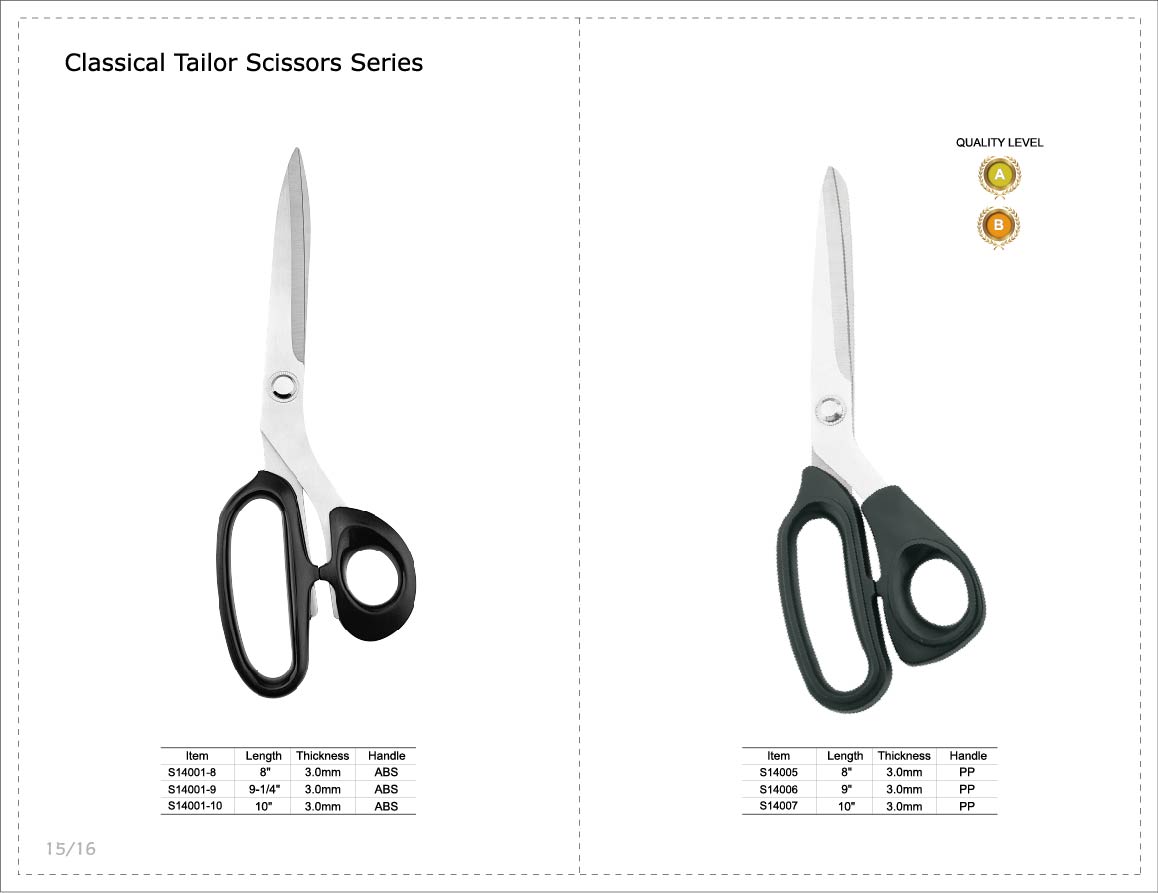 Длительные часы, проведенная резко, может привести к усталости вручную, поэтому эргономичные швейные ножницы необходимы как для комфорта, так и для устойчивого контроля. Серия классических ножниц, посвященных ножницам, рассматривает эту потребность с вдумчивыми дизайнами ручки. Выберите из прочных ручек ABS S14001 для надежного, удобного сцепления или выберите легкие ручки PP, найденные на предметах S14005, S14006 и S14007 для повышения маневренности и гладкого ощущения. Этот эргономичный фокус гарантирует, что вы можете работать дольше и с большей точностью.
